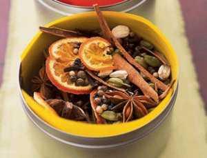 «Восточные пряности»: кардамон, гвоздика, палочка корицы, кусочки сушеного имбиря, черный чай.