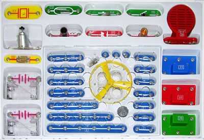 Электронные конструкторы представлены в четырех вариантах, которые отличаются количеством входящих в комплект деталей, сложностью схем, а следовательно могут быть интересны даже старшеклассникам. Кстати, эти конструкторы прошли апробацию в школах и получили высокую оценку специалистов. Эти игрушки можно применять на практических занятиях в школе, так как они согласуются со школьной программой и учебниками физики.