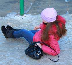 При падении с обледенелых лестниц вам нужно поставить ногу вдоль ступеньки, и таким образом на краю обувной подошвы съехать неспешно вниз.