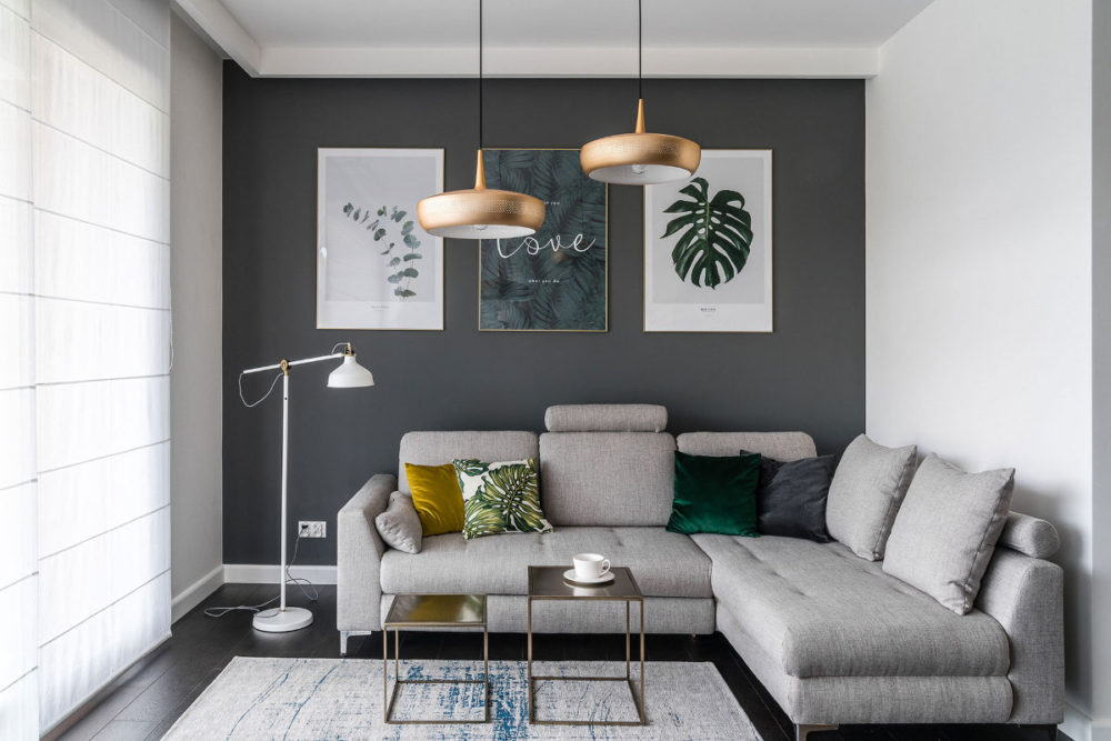 Если вы предпочитаете безопасные, универсальные решения, нюдовые, белые и пастельные оттенки всегда будут хорошим выбором. Серые диваны самые универсальные. Это цвет, который подходит к любому стилю интерьера, а также прекрасно сочетается со всеми остальными цветами: как нейтральными и яркими, так и более смелыми, насыщенными и темными. Выбор серого дивана простой универсальной формы — покупка на долгие годы, даже при смене расстановки он все равно подойдет.