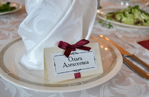 Эти карточки нужно расставлять на столах согласно плану посадки гостей еще до того, как они начнут появляться в банкетном зале. Об этом нужно заранее договориться с менеджером ресторана или свадебным распорядителем. Чтобы гости не сбились с толку и не заблудились, необходимо расставлять на столах напротив каждой тарелки персональные карточки с именем, фамилией или другим обращением.