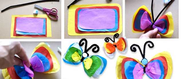 К букету можно добавить бабочек, которые делаются похожим образом.