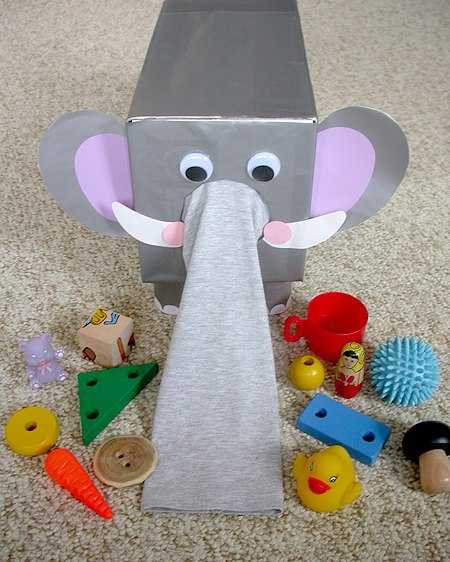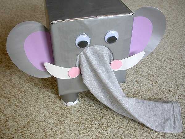 2. Вырежи дырочку для хобота (ориентируйся на размер своей руки), сделай прорези для ушей и хвоста.
