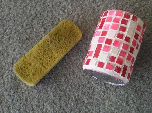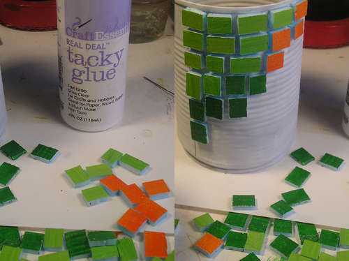 3. Кусочки пенопласта приклей на банку, оставляя между ними щели.