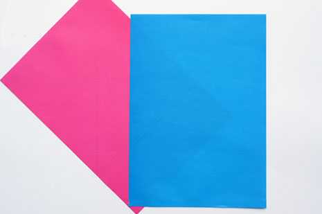 4. Выполните все эти действия с другим листом цветной бумаги, а затем составьте два квадрата вместе.