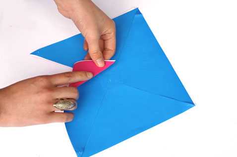 5. Загните каждую из частей левым углом к ??центру так, чтобы дырочка в углу детали совпала с дырочкой в ??центре.