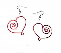 Отрежьте провод - две части по 25 см и попытаться выпрямить. Каждая часть станет серьгой в форме сердца.