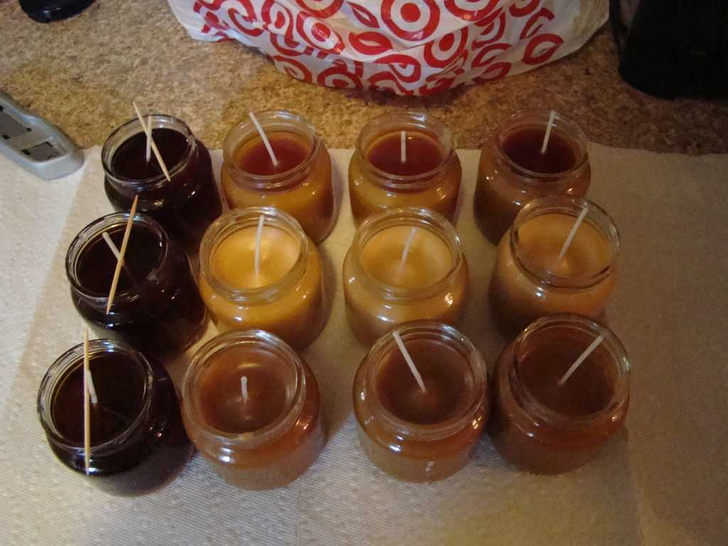 Продолжайте докидывать воск, пока банка не будет заполнена на 3/4.