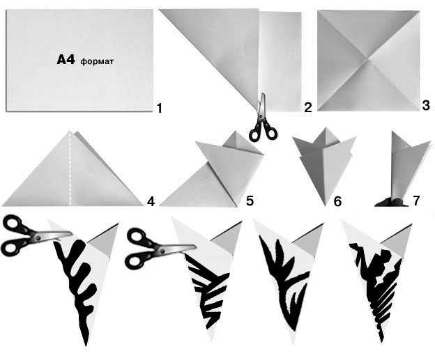 Вот, как сделать снежинки – не нужно вырезать по шаблону, достаточно просто импровизировать.