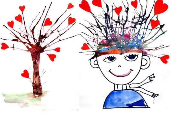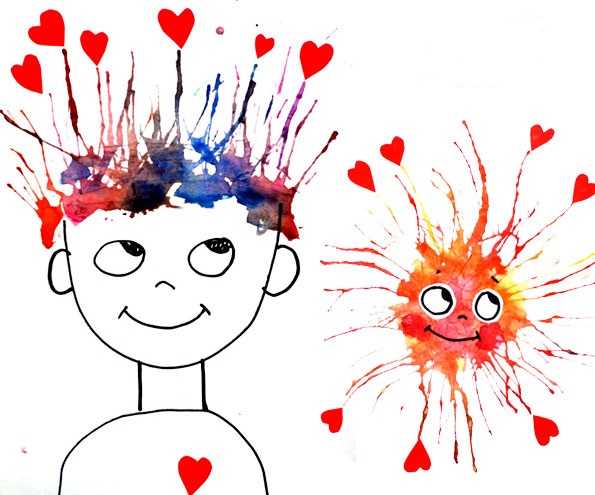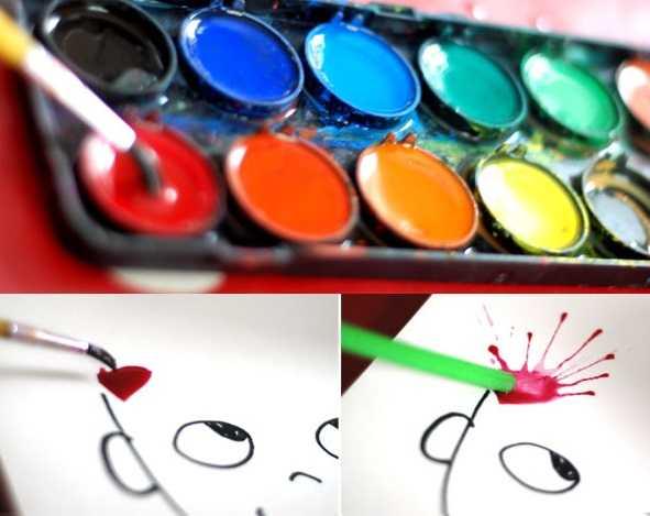 - капаем краску и раздуваем ее трубочкой - делаем волосы