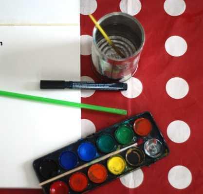 Вам понадобится белый лист бумаги, акварель, толстый маркер и соломинки .