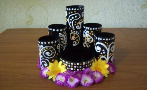 Чтобы сделать органайзер из втулок от туалетной бумаги своими руками, сначала нужно декорировать каждую деталь. Сделать это можно разными способами: