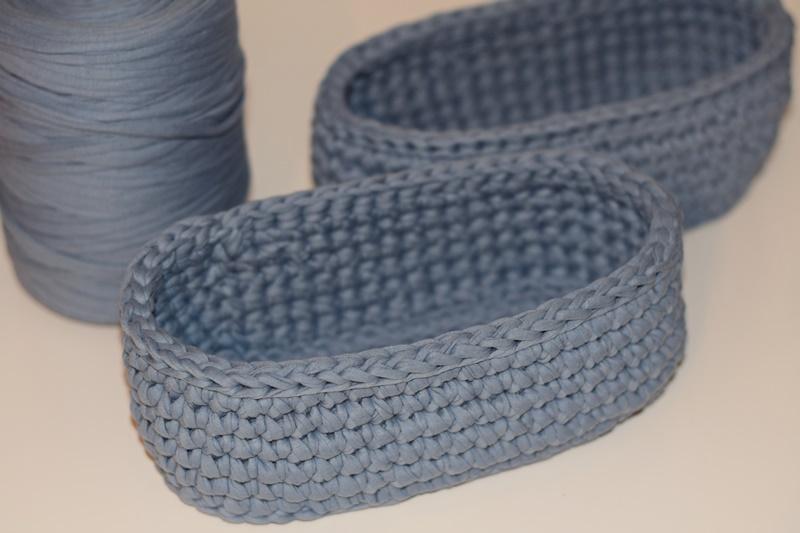 Сейчас очень популярны вещи, вязаные крючком из трикотажной пряжи. Можно сделать своими руками футболочную пряжу из старых футболок. Посмотрите какие симпатичные и функциональные корзинки можно сделать своими руками для вдохновения.
