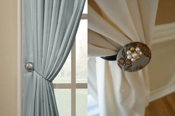 В продаже находится большой выбор магнитов для штор. Они могут быть в виде бабочек, зверушек, цветов, а могут быть обычными и практически незаметными. Но хозяйки, которые решили использовать данный метод, могут столкнуться с проблемой. Некоторые магниты могут оказаться слишком слабыми и не достаточно удерживать шторы. Так что будьте внимательны и всегда проверяйте магниты перед покупкой.