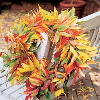 А при помощи двустороннего скотча легко сделать венок из осенних листьев.