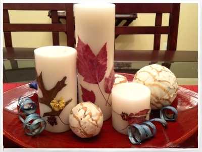 Кроме этого листья можно наклеить на свечи, тыквы и другие поверхности.