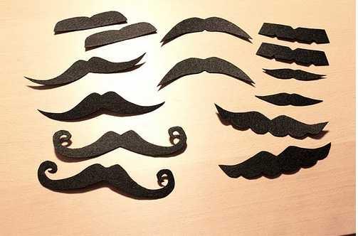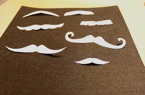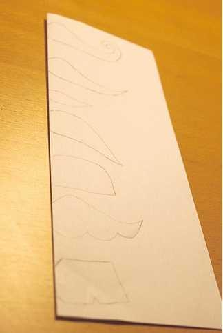 1. Сложите бумагу пополам вдоль. Затем нарисуйте эскиз половин усов. И вырежьте их.