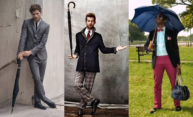 Современный мужской зонтик, как и шелковая бабочка или галстук, ассоциируется с шикарным видом мужчины.