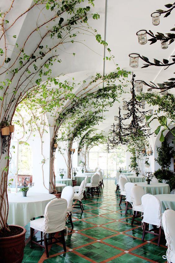 Эко-стиль позволяет использовать для декора различные картины и фото, необычные инсталляции. Он достаточно демократичен в воплощении. Красивые системы озеленения создают особенную атмосферу. Они идеально подходят для кафе с летними террасами.