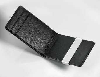 Кошелек с зажимом: Это бумажник, в котором нет отделения для наличных денег. Он имеет только разделы для кредитных карт. Наличные защелкиваются зажимом. Он также называется бумажником для переднего кармана.
