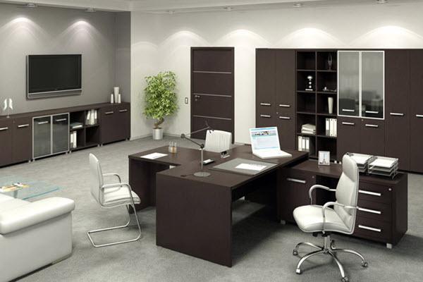 Чтобы офис не выглядел пустым и угрюмым, его можно наполнить дополнительными предметами декора. Установите полки по периметру помещения. Не стоит забывать и о должном количестве места для бумаг, папок и бухгалтерии. Желательно скрыть их от глаза в шкафах, чтобы придерживаться установленной атмосфере.