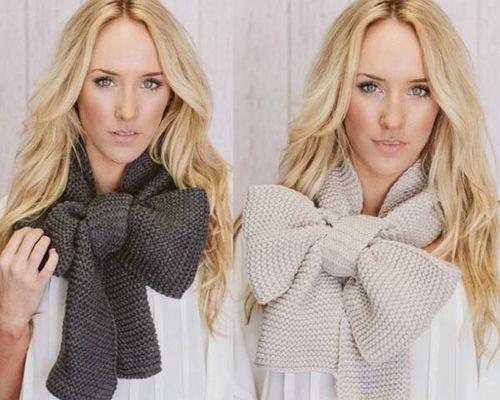 Узел в виде банта. Для завязывания вокруг шеи романтических бантиков модницы давно взяли на вооружение легкие платки. А что, если сделать то же самое с толстым плетеным или меховым шарфом? Такие нетривиальные решения в этом сезоне часто встречались на подиумах.