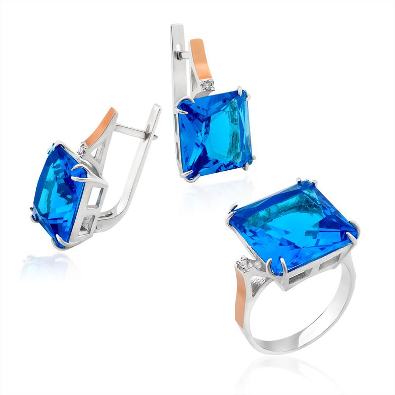 Шикарным дополнением, которое украсит любую женщину, станет гарнитур с фианитами «Лазурный». Мода на роскошные кольца и серьги с крупными камнями все еще продолжается. Большие серьги - очень отчетливый акцент, который добавляет образу стиля и шарма.