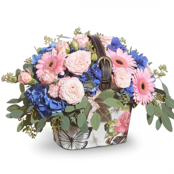Интересный способ оформить композицию из цветочных срезов - положить их в плетеную корзину. Корзины в последнее время стали популярными. Их преимущество в том, что они могут быть дополнены любым подарком. Корзина может включать в себя: