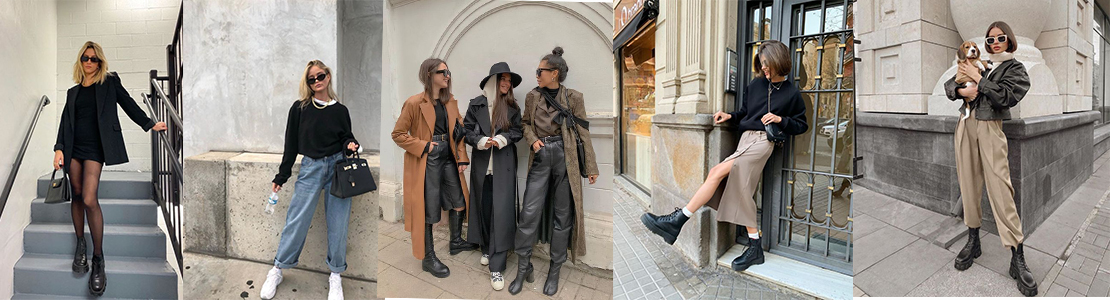 Стильные женские ботинки – обувь на более прохладное время, они закрывают щиколотку и имеют стильный вид благодаря молнии или шнуровке. Грубоватая, даже несколько брутальная форма, толстая подошва и каблук идеально подходят для того, чтобы не зависеть от капризов погоды. Осенью 2020 года в моде комбинации ботинок с брюками со стрелками и косухой или юбка макси и водолазка.