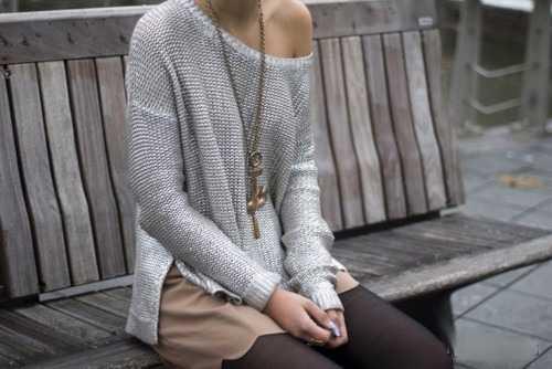 Прекрасный способ сделать образ более нарядным, дополнив свитер эффектными украшениями. К тому же, в этом сезоне актуальны короткие и достаточно массивные ожерелья. И если вы хотите использовать такое украшение, то ваш свитер должен иметь или не глубокий вырез, или не высокий ворот.