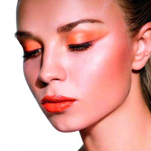 Коралловый. Розово-оранжевый цвет одновременно и согревает, и холодит. Поэтому можно делать сразу два коралловых акцента — и на губах, и на щеках.