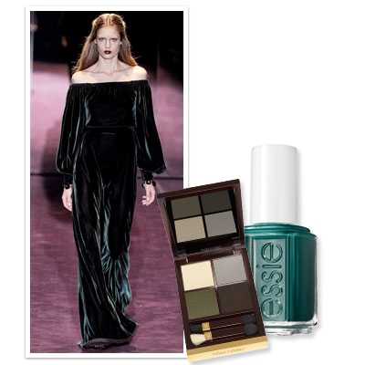 Зелень леса. Оттенки темно-зеленого леса особенно эффектно выглядят в бархатном обрамлении. С помощью макияжа бархатистую текстуру можно получить, если нанести более светлые мерцающие тени поверх глубоких матовых оттенков.