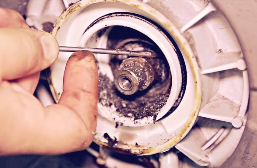 - в пространство между баком и барабаном попала мелочь из карманов вещей или часть аксессуара или фурнитуры. Удостовериться, что вибрация стиральной машины вызвана именно этим предметом можно путем проворачивания барабана руками. Попробуйте изъять его через отогнутое “крыло” манжеты или, через отверстие, куда вмонтирован нагревательный элемент (необходима частичная разборка стиралки).
