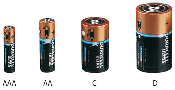 - C (R14) – 1,5-вольтовая цилиндрическая батарея, используемая в немного более крупном оборудовании, таком как проигрыватели компакт-дисков. Его длина 50 мм, диаметр 26 мм.
