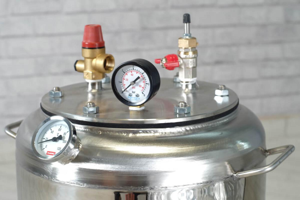 Автоклав представляет собой герметичную емкость для стерилизации продуктов под давлением. При температуре 110-120°C и давлении 3-4 бар полностью уничтожаются все вредные микроорганизмы, включая споры ботулизма.