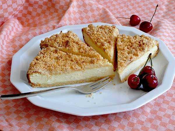 Выпекать в предварительно разогретой духовке до 180°С 60-70 мин. Затем вынуть из духовки, через несколько минут снять обод формы, остудить пирог.