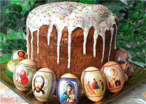Ингредиенты для теста: 1 кг муки,1,5 стакана молока, 40-50г свежих дрожжей, 6 яиц,1,5-2 стакана сахара, 300 г сливочного масла, 1/2 ч. л. соли,150 г изюма, 50 г цукатов, 50 г миндаля (по желанию), можно добавить 1/2 ч. л. куркумы для цвета, ванилин.