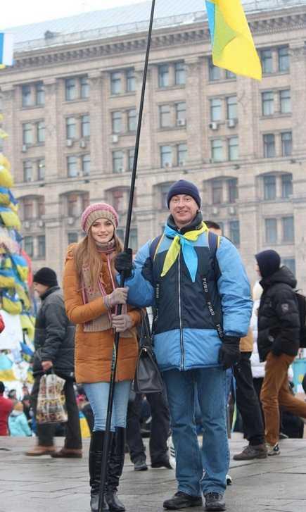 Мисс Украина-2013 Аня Заячковская с двоюродным братом вышла митинговать на Евромайдан. Соответствующее фото обнародовала в сети Twitter пользователь Кристина Бердинских.