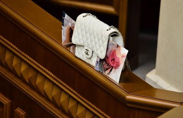 Ирина Геращенко от УДАРа намекнула, что за дорогую сумочку "Шанель" можно купить семь бронежилетов высокого качества. При этом Геращенко имени Герман не назвала. Но та поняла намек, вынула все свои вещи из сумочки "Шанель" белого цвета и подарила ударовцам.