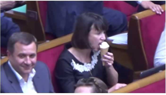 Вчера, 18 июня, во время пленарного заседания парламента, она перед десятками фото и телекамер съела мороженое.