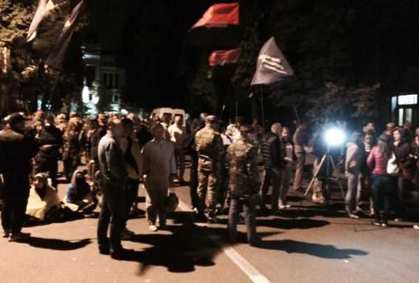 Под Администрацией президента собрались представители "Правого сектора" с требованием отставки министра внутренних дел Арсена Авакова.