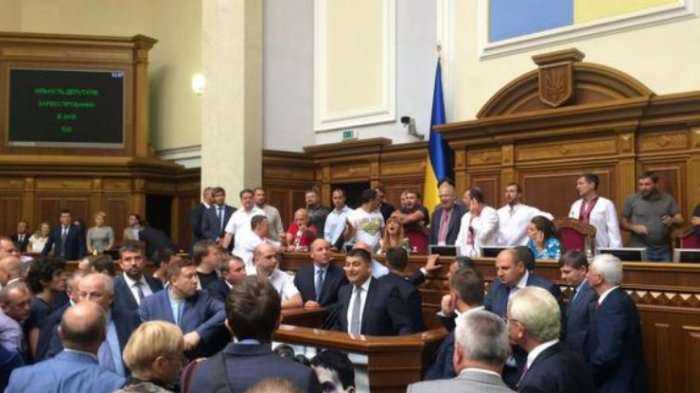 Председатель Верховной рады Украины Владимир Гройсман открыл внеочередное заседание парламента под возгласы народных депутатов Радикальной партии «Ганьба!»