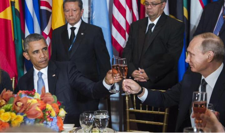 Президенты США и Российской Федерации (РФ) Барак Обама и Владимир Путин чокнулись бокалами во время ланча у генерального секретаря Организации Объединенных Наций (ООН) Пан Ги Муна. Соответствующее фото в своем Twitter обнародовал российский журналист Дмитрий Смирнов.
