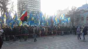 Так, около 10:00 к зданию Рады со стороны Майдана пришли митингующие под флагами партии “Свобода”. К этому времени здесь уже собрались несколько сотен представителей Финансового Майдана и движения "5.10".
