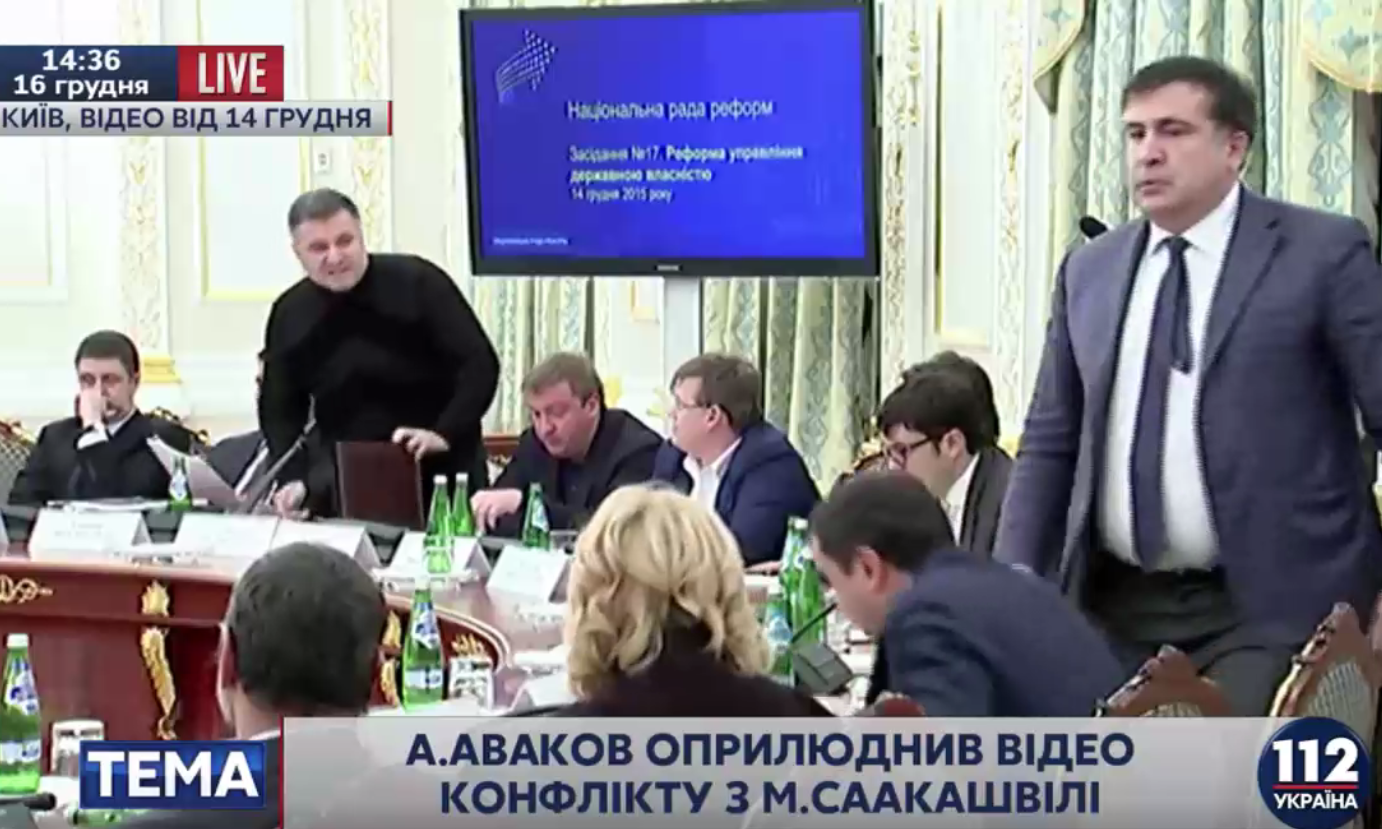 Напомним, что 14 декабря между губернатором Одесской области Михеилом Саакашвили и министром МВД Арсеном Аваковым во время заседания Нацсовета реформ произошел конфликт, в ходе которого Аваков облил Саакашвили водой. К конфликту присоединился и премьер-министр Арсений Яценюк, который назвал одесского главу ОГА "гастролером". В свою очередь Саакашвили заявил, что не считает себя "гастролером" в Украине. Обе стороны требуют обнародовать запись конфликта.