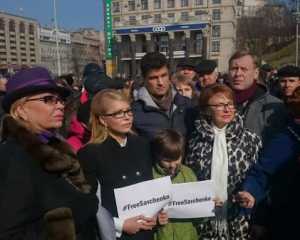 На акцию поддержки пришла лидер партии «Батькивщина» Юлия Тимошенко,ведь первым номером избирательного списка партии является Савченко. Вместе с ней увидели Александру Кужель и Сергея Власенко.