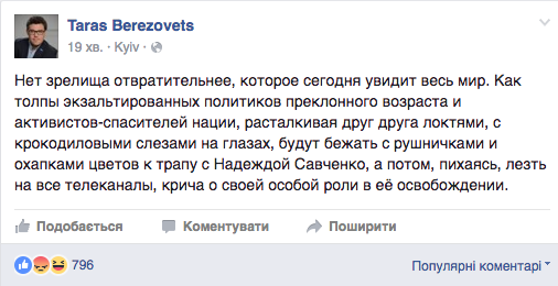 Политтехнолог Тарас Березовец заранее предчувствовал, что будет в момент приземления Савченко на Родине.