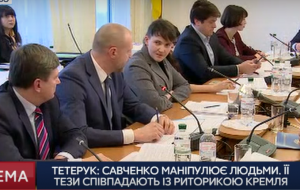Тетерук обвинил бывшую летчицу в попытке манипуляции и удивился тому, как часто слова и тезисы Савченко совпадают с риторикой террористов "ЛДНР" и руководства Кремля. Савченко молча слушала эмоциональный спитч нардепа и лишь один раз попыталась перебить Тетерука.