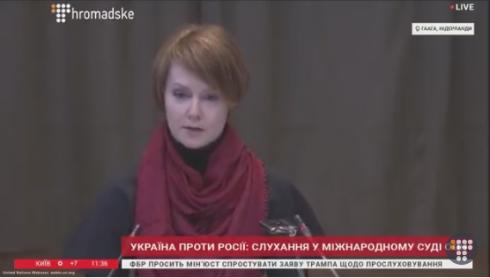 Елена Зеркаль, глава украинской делегации в Гааге, где в эти минуты происходит слушание по иску официального Киева к Москве по поводу бесчинств России на Донбассе, заявила о том, что за все военные преступления на востоке Украины несет ответственность Кремль.