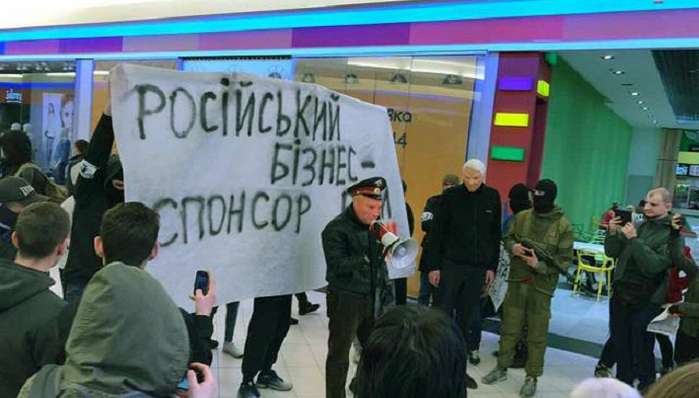 По сообщениям СМИ, проукраинские активисты в Киеве начали блокировать российские магазины "Спортмастер" и Gloria Jeans. В минувшие выходные участники батальона "Азов" провели демонстрации вблизи торговых центров.